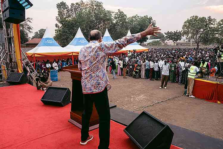 Nous avons poussé un soupir de soulagement collectif lorsque nous sommes arrivés sur le terrain et que nous avons vu des dizaines de milliers de Sud-Soudanais enthousiastes venus entendre l’Évangile de Jésus Christ ! La multiplication que Dieu avait montrée à l’évangéliste Reinhard Bonnke et que l’évangéliste Kolenda est en train de réaliser par le biais du Bootcamp d’évangélisation se produisait sous mes yeux.