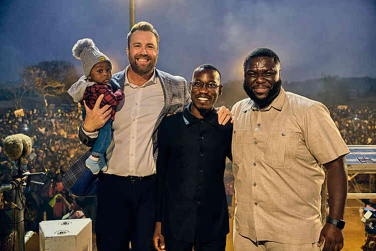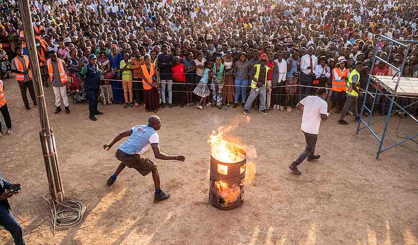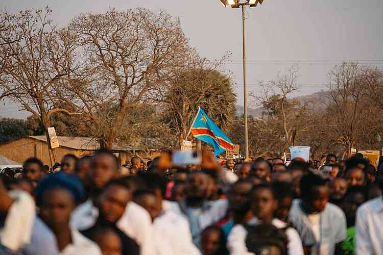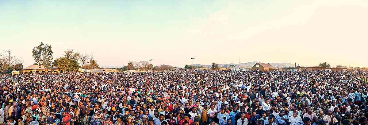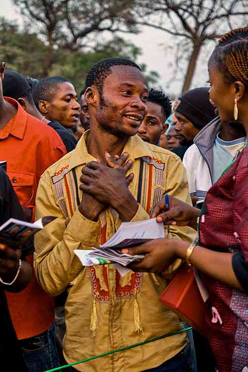 Dans la ville de Kasumbalesa, où l’évangéliste Rubens Cunha a prêché, la foule comptait surtout des jeunes.