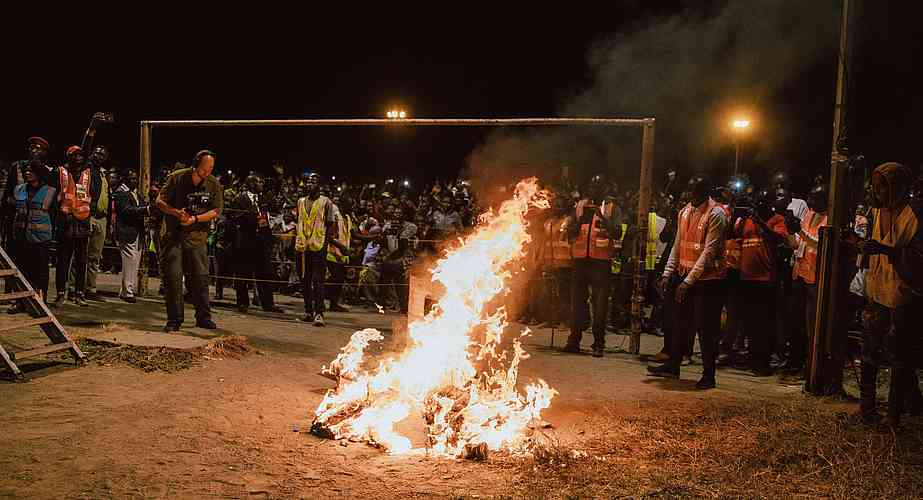 Après deux jours de labour, quelque chose de puissant s’est produit. Le troisième soir, alors que nous prêchions sur le sang de Jésus et le pouvoir qu’il a de briser les chaines, de guérir les corps et de sauver les perdus, des milliers de personnes ont invoqué le nom de Jésus. Mais ce n’est pas tout : des centaines de personnes ont apporté leurs idoles, leurs articles de sorcellerie, leur juju, leurs drogues, etc. pour être brulés dans les tonneaux devant la foule.