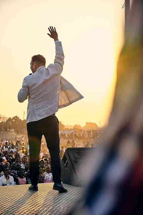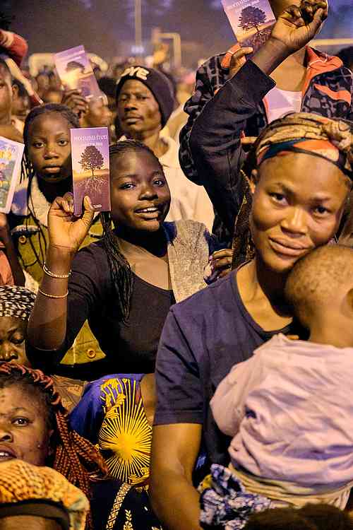 Remplis chaque vase vide. Baptise-nous de feu !’. Et alors, comme un vent impétueux, le ciel est descendu. Le Saint-Esprit s’est répandu sur le terrain de Kipushi. Tout autour de nous, les gens ont commencé à trembler, à pleurer, à crier et à tomber à genoux. Certains ont parlé en langues pour la première fois, d’autres ont élevé la voix pour louer Dieu tandis que des vagues de gloire déferlaient sur la foule ».