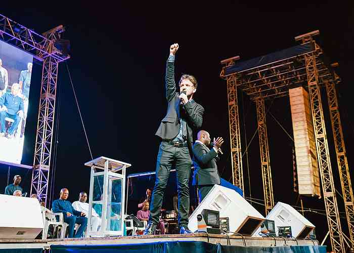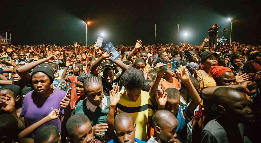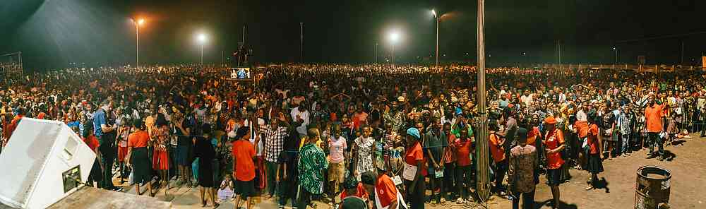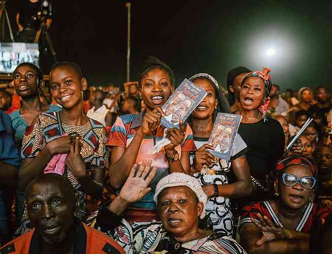 C’est une coutume que nous avons dans les campagnes de Christ pour toutes les Nations, depuis la toute première campagne menée par l’évangéliste Reinhard Bonnke à Gaborone, au Botswana, dans les années 70, lorsqu’il a dit avoir vu « ...une vague transparente venant de la droite vers la gauche, balayant ce stade. Lorsqu’elle a touché ces gens, c’était comme si un vent puissant et impétueux les avait jetés à terre en masse. Tous parlaient en langues et prophétisaient à mesure que l’Esprit leur donnait la parole ». C’est à ce moment-là que Reinhard Bonnke a réalisé que « seule une effusion massive du Saint-Esprit brisera l’échine du diable en Afrique ». Eh bien, ce soir, nous avons vu les puissances des ténèbres brisées par la puissance de l’Esprit !