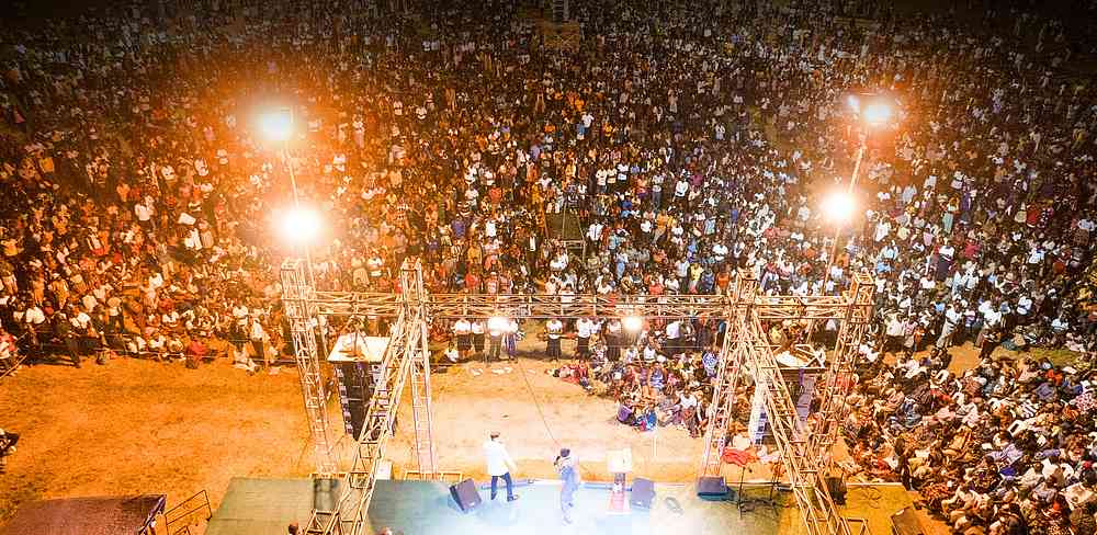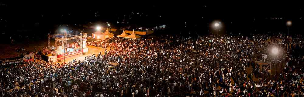 « La faim de Dieu des gens s’est reflétée dans les multitudes qui sont venues ce soir. La sonorisation a cessé de fonctionner à deux reprises pendant la prédication, mais les gens sont restés. En fait, la foule n’a cessé de croitre jusqu’à la fin de la réunion ! Nous avons vu des milliers de personnes répondre à l’Évangile et des miracles ont suivi la prédication de l’Évangile ».