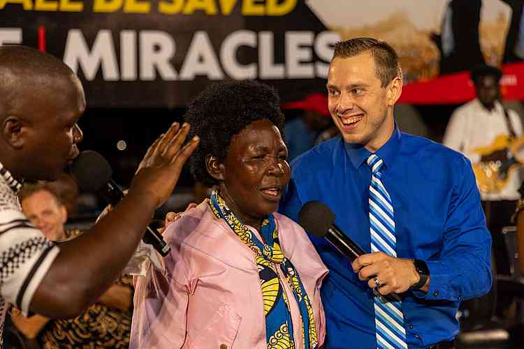 À Mbale, l’équipe père/fils des évangélistes Kevin et Joshua Wagner a exercé un ministère puissant, prêchant l’Évangile et priant pour les malades.