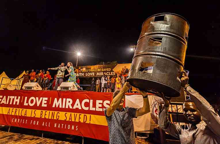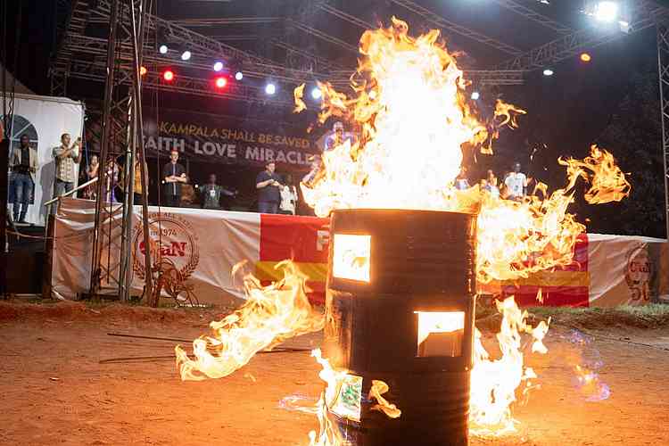 « Après avoir prêché l’Évangile, nous avons brulé des fétiches, des amulettes et des idoles. En fait, les barils étaient presque pleins de toutes sortes d’objets religieux et de culte, ainsi que d’accessoires de sorcellerie. J’ai dit à la foule que ce soir, lorsque le Saint-Esprit les convaincrait, ils devraient amener à l’avant leurs fausses idoles, talismans, amulettes, fétiches, juju, etc. Je leur ai même donné une dernière chance juste avant de bruler les barils. Même à la dernière minute, les gens couraient vers l’avant et jetaient les reliques de leurs vies passées ! Nous avons mis le feu aux barils, brulé ces déchets et brisé les malédictions dont le diable avait accablé cette région. L’équipe et de nombreux membres du peuple de Dieu ont commencé à danser et à célébrer la défaite de l’ennemi. Nous avions l’impression d’avoir gagné une bataille, et la célébration était à la hauteur de la victoire que Jésus nous a apportée. Le diable a été chassé de Kampala !! »