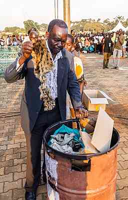 Nous le faisons dans chaque campagne, tout comme ils l’ont fait dans Actes 19:19 lorsqu’il est dit : « Et un certain nombre de ceux qui avaient exercé les arts magiques, ayant apporté leurs livres, les brulèrent devant tout le monde …». Souvent, les gens vivent dans la crainte des objets que les sorciers leur ont demandé de porter pour éloigner les mauvais esprits ou les malédictions. Parfois, on leur a dit que s’ils enlevaient ces breloques (comme un collier ou un bracelet), ils mourraient. Lorsqu’ils abandonnent tout à Jésus et jettent ces bibelots, ils trouvent une liberté et une paix nouvelles.
