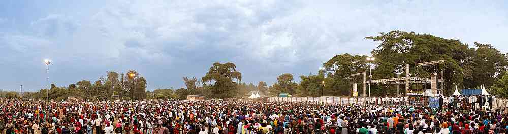 « Ce soir, l’évangéliste Daniel Kolenda est retourné dans la ville de Gulu, en Ouganda, sur le même terrain qu’en 2012. C’est la troisième soirée de la campagne et la foule a augmenté de façon exponentielle chaque soir. Et ce soir n’a pas fait exception. Les gens ont commencé à se rassembler des heures à l’avance pour écouter le message qu’il allait donner. Daniel les a récompensés avec un message sur l’Évangile clair sur le sang de Jésus et des milliers de personnes ont répondu à l’appel du salut ».
