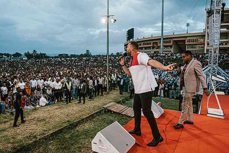 Daniel Kolenda preached again in Hawassa, where the crowd doubled from yesterday. The energy was electric, far beyond what local leaders expected.