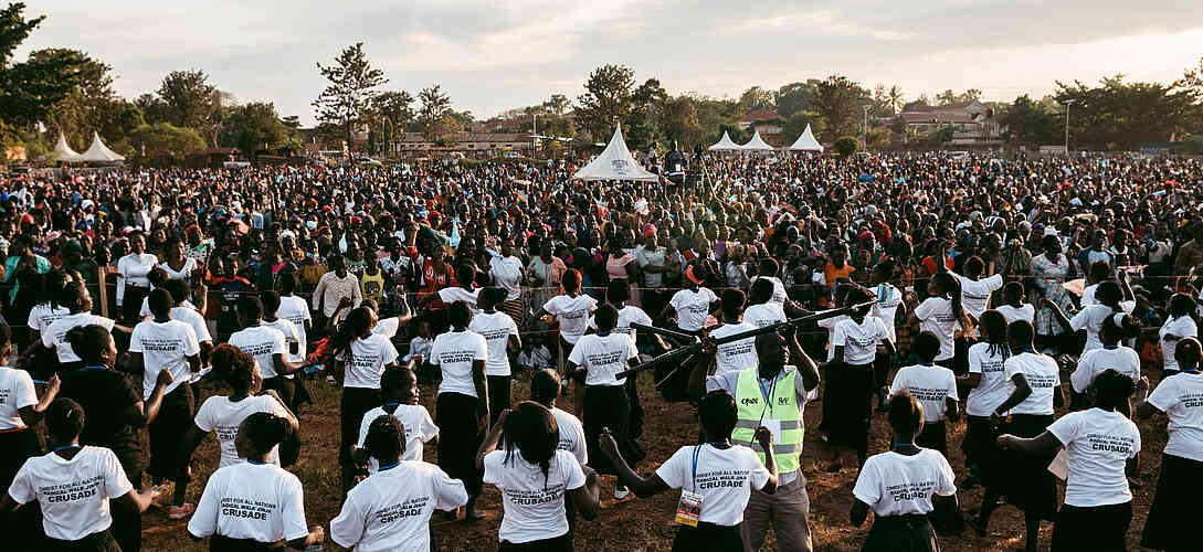 As Reverend Vandenberg and I left the field last night, we knew God was moving mightily in Jinja. The crusade had been reported on through many newscasts, and we had received several communications from both local and national leaders because they had heard what was happening in Jinja. Yet, I was still overwhelmed when we arrived on the Crusade field tonight to a crowd that had almost doubled from the previous night! My heart was bursting watching these precious people dancing and rejoicing!