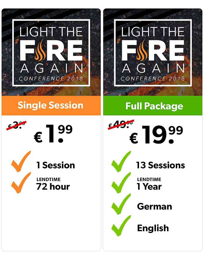 You can watch specific sessions, or the Full Package with all the conference speakers. Downloads will not be possible, and translated sessions will be available in German, delayed by a few hours.