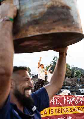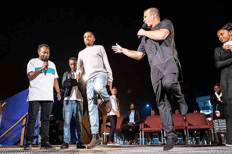 Admaso had been unable to move his wrist for 11 years after falling from a tree. After prayer, he waved his hands joyfully and even confirmed his healing by doing push-ups on stage.