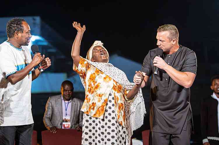 Instantly, she began waving her arms – something miraculous was unfolding. She pushed through the crowd toward the front. Taking her hand, I led her onto the platform and asked what happened. This woman lived on the outskirts of Hosanna and had traveled into town just for the campaign. Deaf in both ears for seven years, she said the moment I pointed at her, her ears popped open – she could hear! She danced and jumped across the platform, overcome with unrestrained joy.